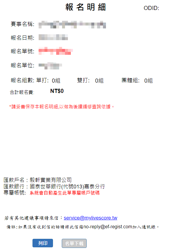 Q:哪裡可以找到我的ODID呢? A:於『報名明細』右上方可以找到!